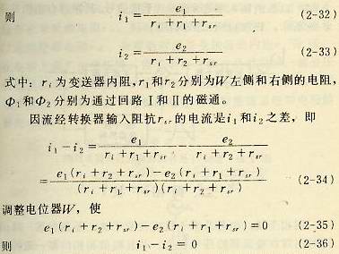 如圖2-27所示,這種方法是在一個(gè)電極上引出兩根導(dǎo)線,分別接在一個(gè)電位器W的兩端,另一個(gè)電極的引出線和電位器W的中端分別接到轉(zhuǎn)換器的輸入端,即rsr的兩端。這樣就形成了兩個(gè)閉合回路Ⅰ和Ⅱ,在磁場中磁通相互交鏈。在閉合回路Ⅰ中感應(yīng)產(chǎn)生的電動勢e1和閉合回路Ⅱ中感應(yīng)產(chǎn)生的電動勢e2各自形成電流i1和i2. i1和i2分別經(jīng)過電位器中端加到轉(zhuǎn)換器的輸入電阻rsr上。因這兩個(gè)電流的方向是相反,當(dāng)被測液體的流速為零時(shí),調(diào)整電位器w中心觸點(diǎn)的位置,可以找到一個(gè)平衡點(diǎn),是兩個(gè)閉合回路中的電流i1和i2大小相等,這樣流經(jīng)rsr上的電流i1和i2就可以相互抵消。其關(guān)系可用下列式子來表示。