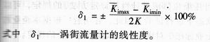 渦街流量計(jì)校準(zhǔn)基本誤差和重復(fù)性測試方法1.把渦街流量計(jì)水平安裝在流量校準(zhǔn)裝置上,在上限流量下游運(yùn)行5分鐘后進(jìn)行校準(zhǔn)。2.按渦街流量計(jì)的流量范圍選擇Qmin、0.15Qmax、0.25Qmax、0.4Qmax、0.7Qmax和Qmax六個流量點(diǎn)(Qmin和Qmax分別為流量范圍內(nèi)最小流量值和最大流量值),每個流量點(diǎn)的實(shí)際流量值應(yīng)不超過規(guī)定值的5%,當(dāng)Qmin>0.15Qmax時,允許選擇5個流量點(diǎn)。3.按照規(guī)定的流量點(diǎn)進(jìn)行單行程校準(zhǔn),每點(diǎn)連續(xù)測量次數(shù)應(yīng)不少于3次。4.平均儀表系數(shù)K的計(jì)算: 5.計(jì)算每個流量點(diǎn)的儀表系數(shù): 6.計(jì)算渦街流量計(jì)的平均儀表系數(shù): 7.線性度計(jì)算: 8.基本誤差的計(jì)算 9.計(jì)算重復(fù)性