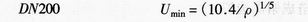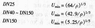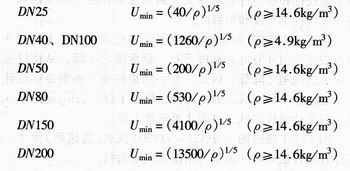 對于氣體和蒸汽,不同公稱通徑最低流速的經(jīng)驗公式如下: