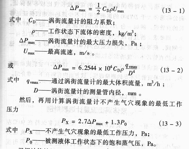 選定渦街流量計的公稱通徑后,還應根據(jù)最大流量、儀表通徑及工作狀態(tài)下流體密度,核算渦街流量計的最大壓力